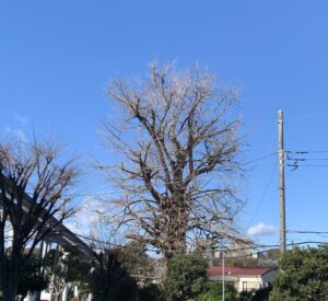 ↑大銀杏 葉っぱがなくなり寒々と澄んた冬空に・:*+.