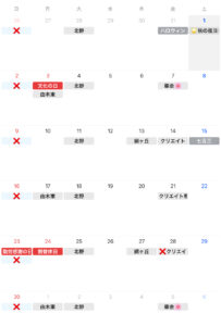 🍠11月の予定🍠 calendar_today 2025年10月21日 2025年11月の予定 ※クリエイトホール…11/24(金)は会場のご用意ができなかったためお休み ◎11/1(土)秋の夜ヨーガの会です!予約承ります🌙*゚是非ご参加くださいませ